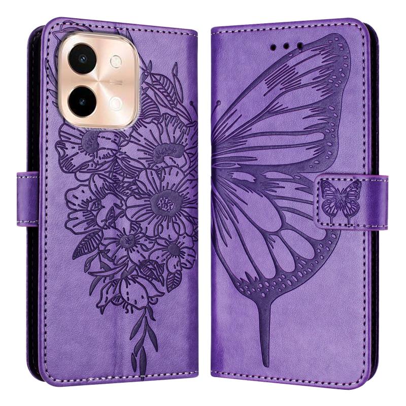 For vivo Y28 4G Embossed Butterfly Leather Phone Case(Light Purple)