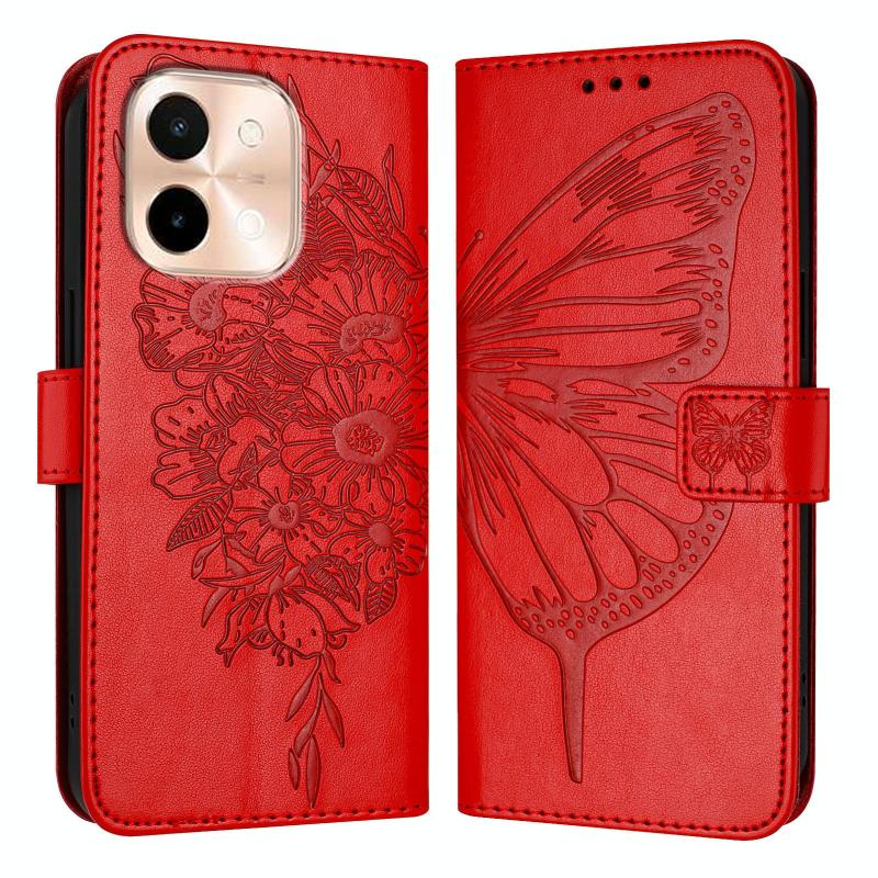 For vivo Y28 4G Embossed Butterfly Leather Phone Case(Red)