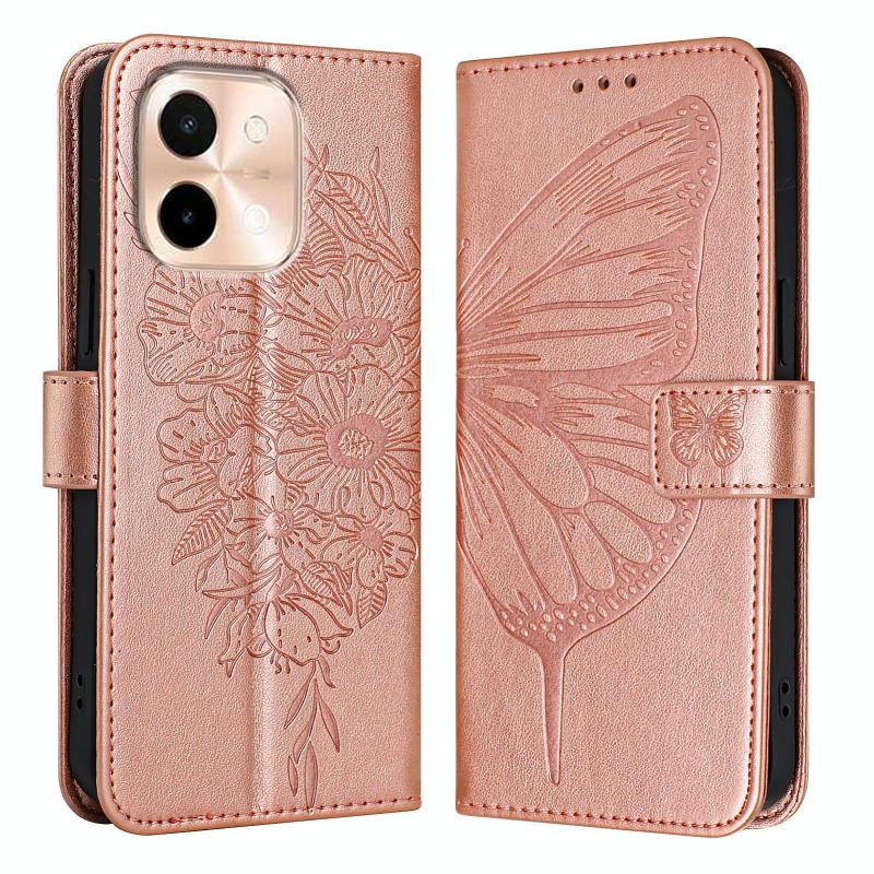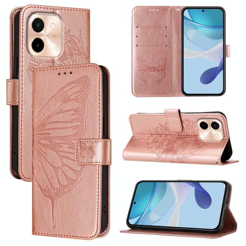 For vivo Y28 4G Embossed Butterfly Leather Phone Case(Rose Gold)