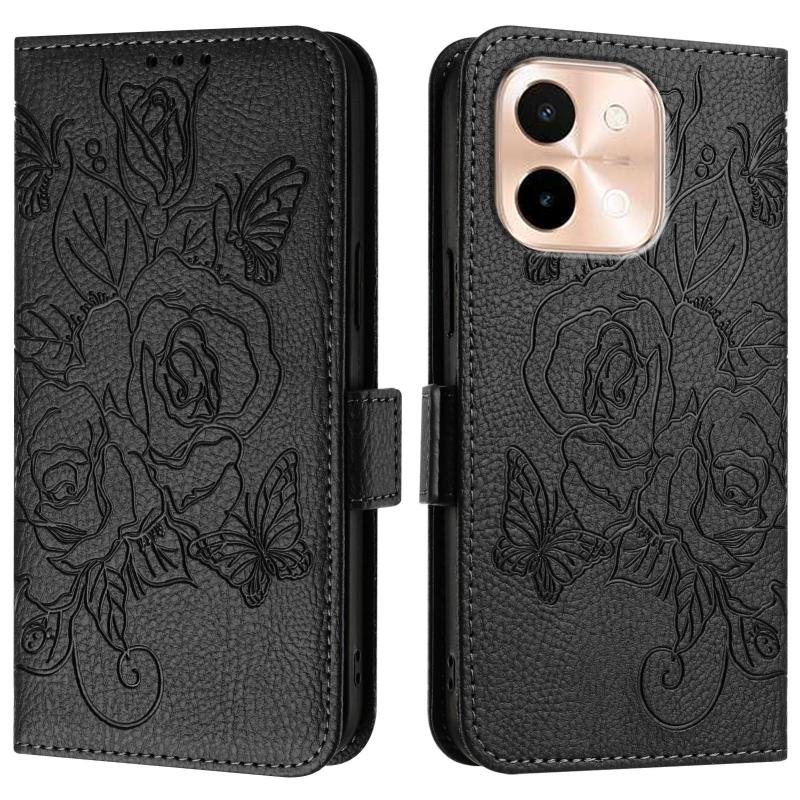 For vivo Y28 4G Embossed Rose RFID Anti-theft Leather Phone Case(Black)