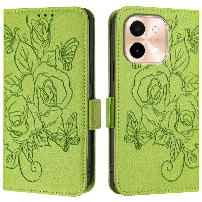 For vivo Y28 4G Embossed Rose RFID Anti-theft Leather Phone Case(Green)