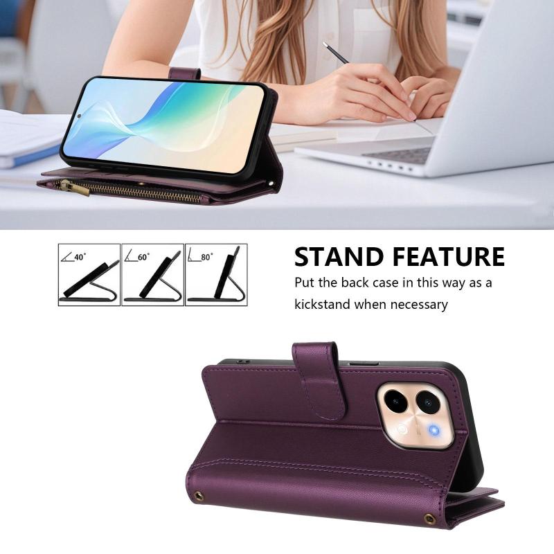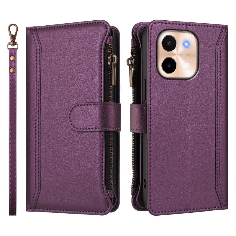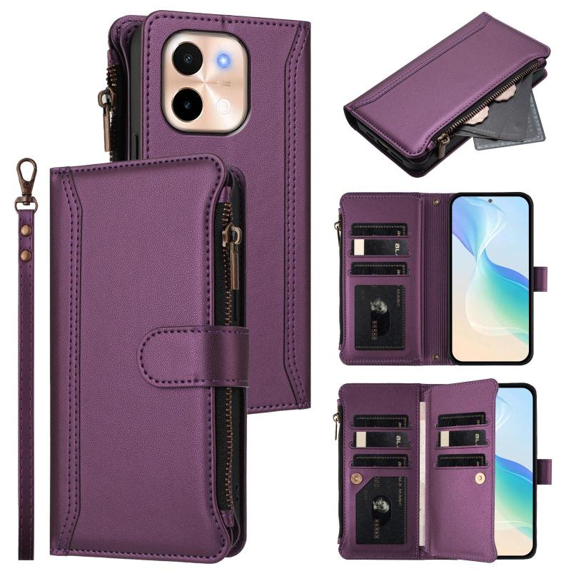 Για vivo Y28 4G Global Μαγνητικό Κλείσιμο 9 Θήκες Καρτών Δερμάτινη Θήκη με Φερμουάρ και Λουρί Χεριού (Σκούρο Μπλε)
