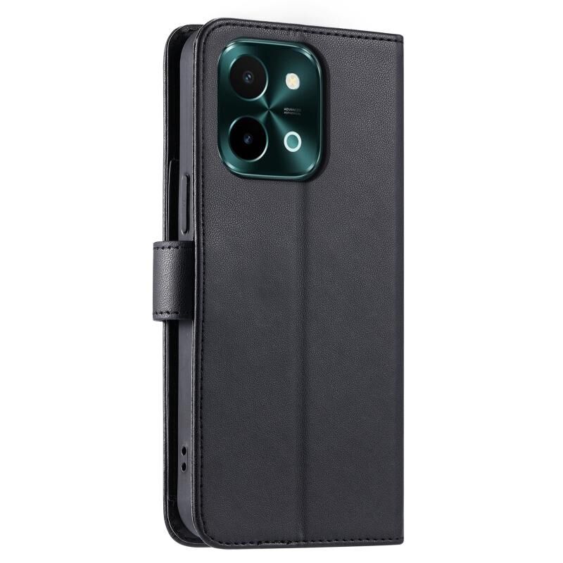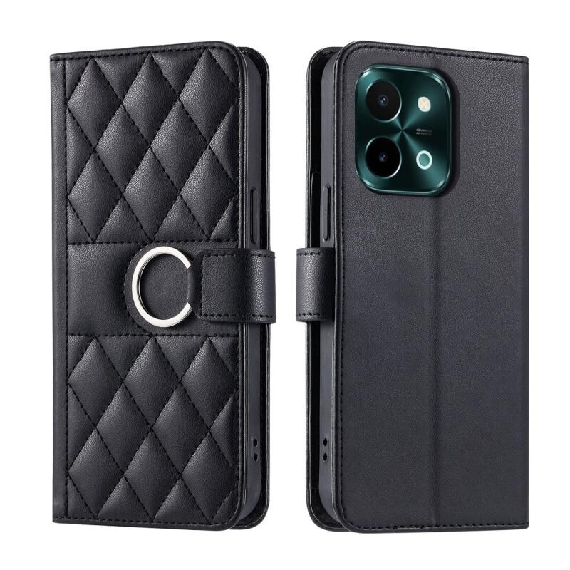 Για το vivo Y28 4G Παγκόσμια δαχτυλίδι πόρπη ρομβοειδής δερμάτινη θήκη τηλεφώνου (Μαύρο)