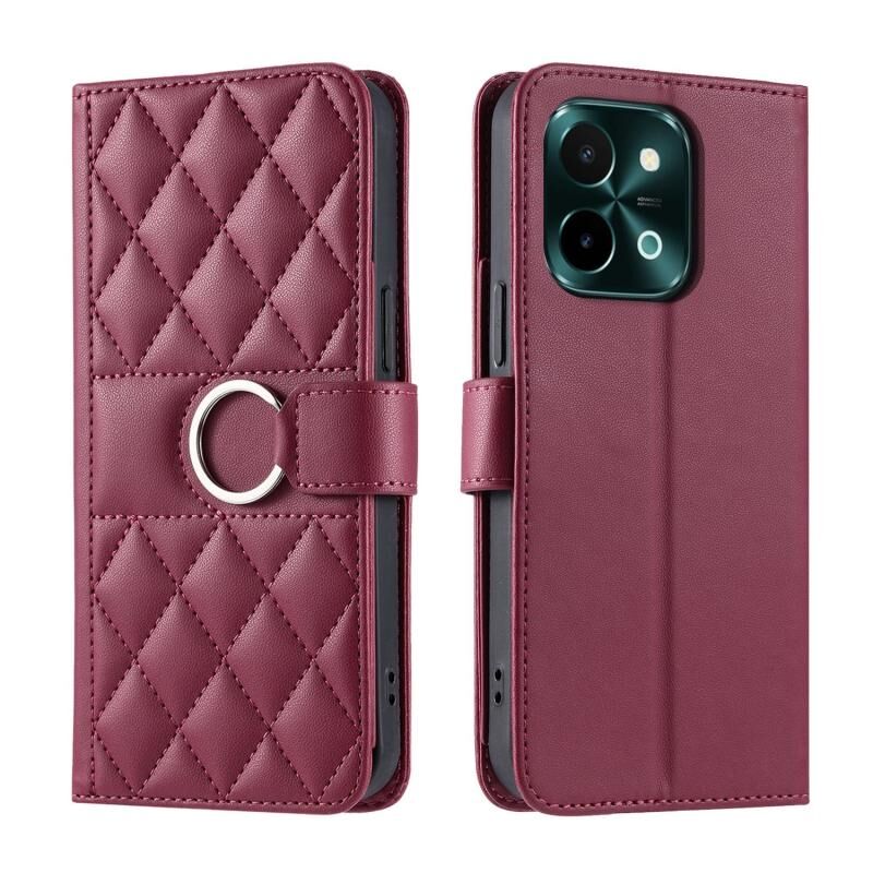 Για το vivo Y28 4G Παγκόσμια δαχτυλίδι πόρπη ρομβοειδής δερμάτινη θήκη τηλεφώνου (κόκκινο)