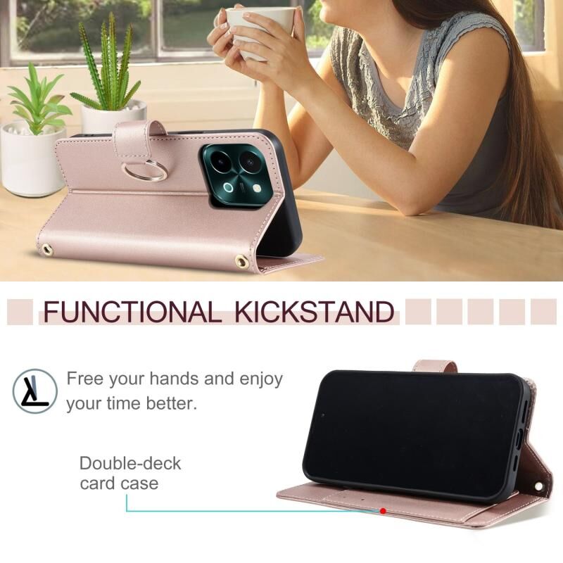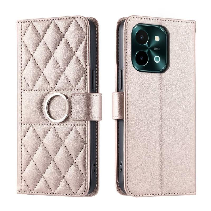 Για το vivo Y28 4G Παγκόσμια δαχτυλίδι πόρπη Rhombic δέρμα τηλέφωνο υπόθεση (Rose Gold)