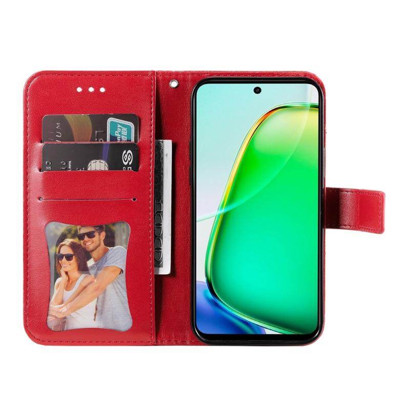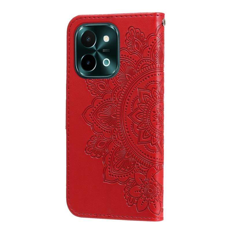 For vivo Y28 4G Global Seven-petal Flowers Embossing Leather Phone Case(Red)