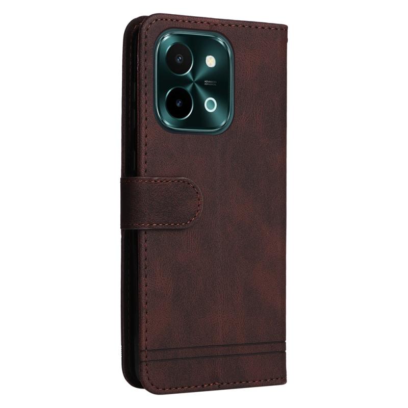 Θήκη τηλεφώνου για vivo Y28 4G Global, αίσθηση δέρματος, σχέδιο Δέντρου της Ζωής, μεταλλικό κουμπί (Κόκκινο)