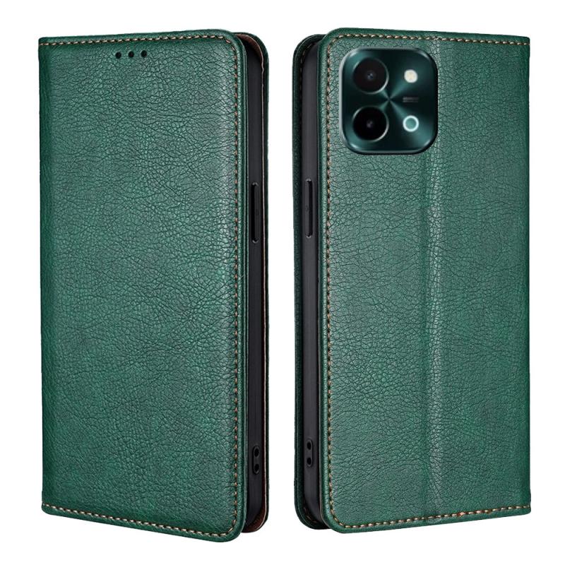 Θήκη τηλεφώνου για vivo Y28 4G, μαγνητική δερμάτινη, συμπαγούς χρώματος, με γυαλιστερό λάδι (πράσινο)