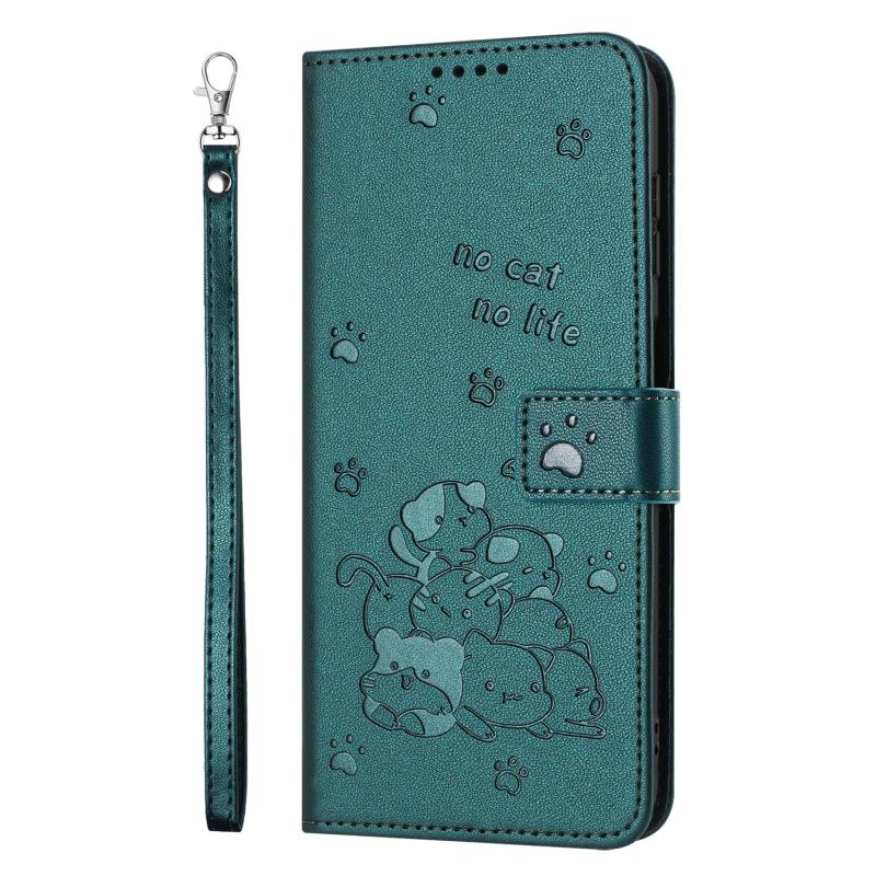 Θήκη δερμάτινη για vivo Y28 4G / iQOO Z9x 5G με ανάγλυφο σχέδιο γατάκι και κορδόνι (Μωβ)