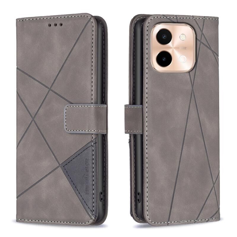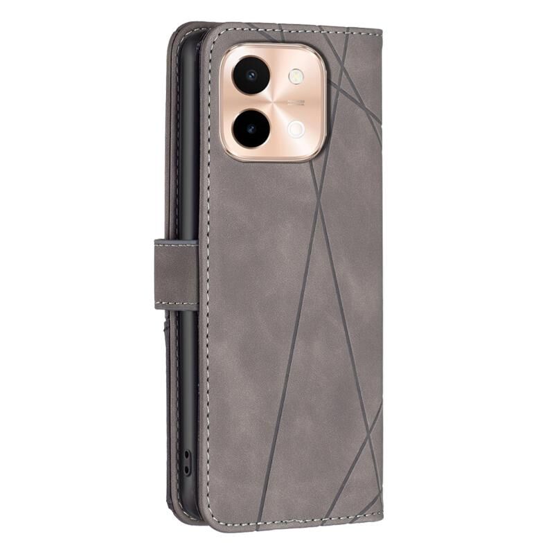 Θήκη τηλεφώνου δερμάτινη με μαγνητικό κούμπωμα και υφή ρόμβου για vivo Y28 4G (Μαύρο)