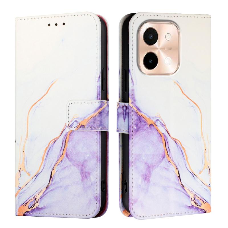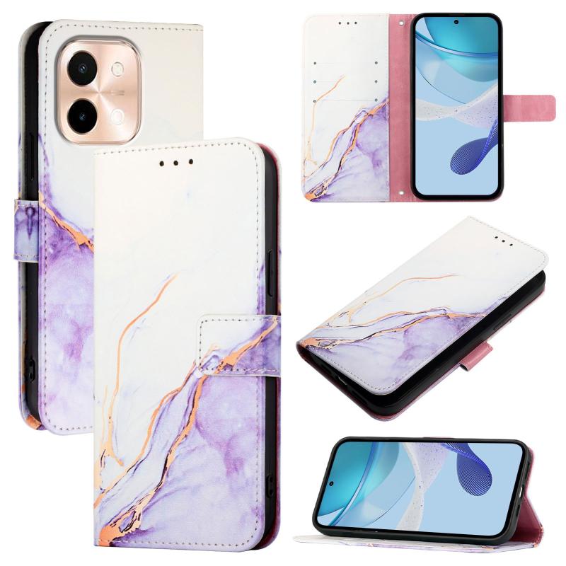 For vivo Y28 4G PT003 Marble Pattern Flip Leather Phone Case(White Purple)