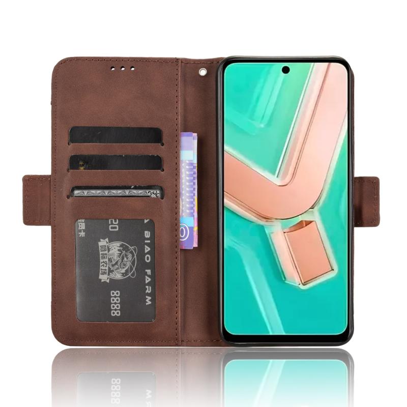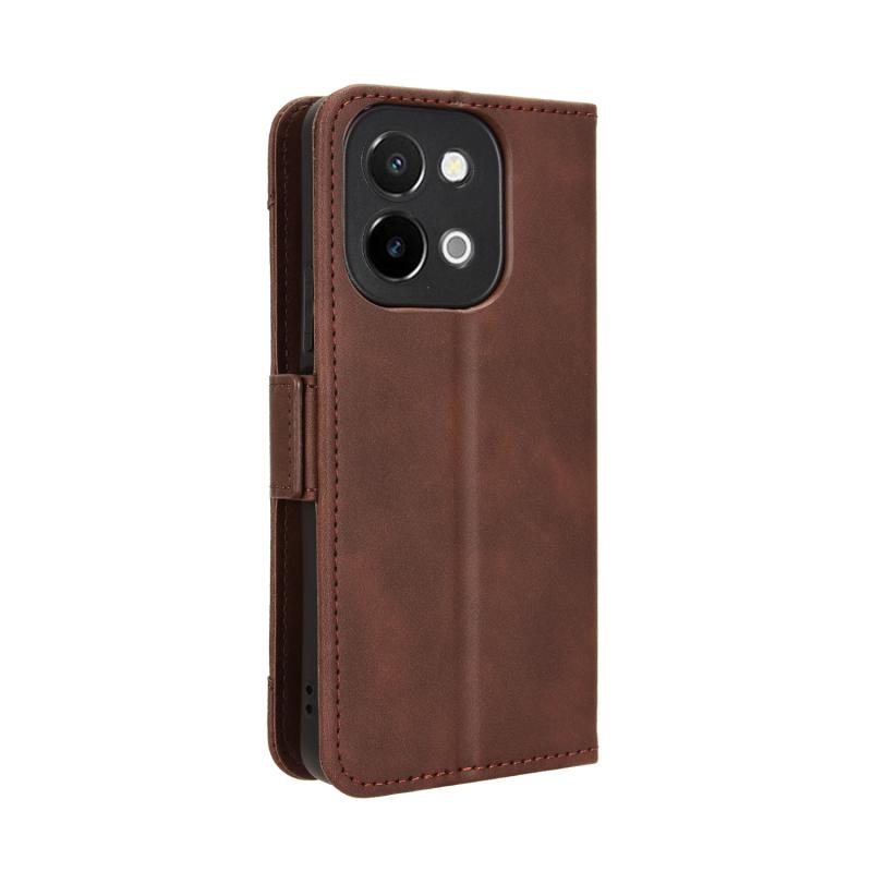 Θήκη τηλεφώνου από δέρμα για vivo Y28 4G με υφή μοσχαρίσιου δέρματος, αίσθηση στην αφή και θήκες καρτών (Καφέ)