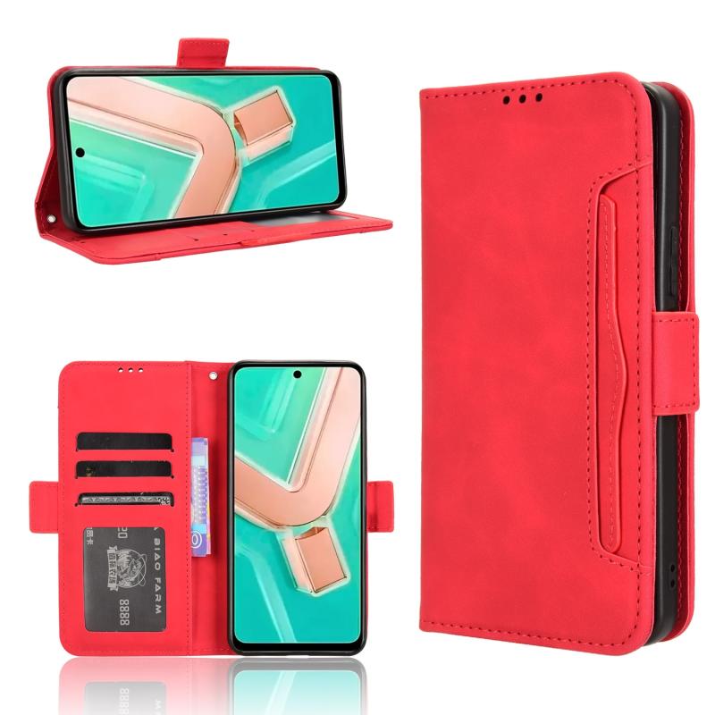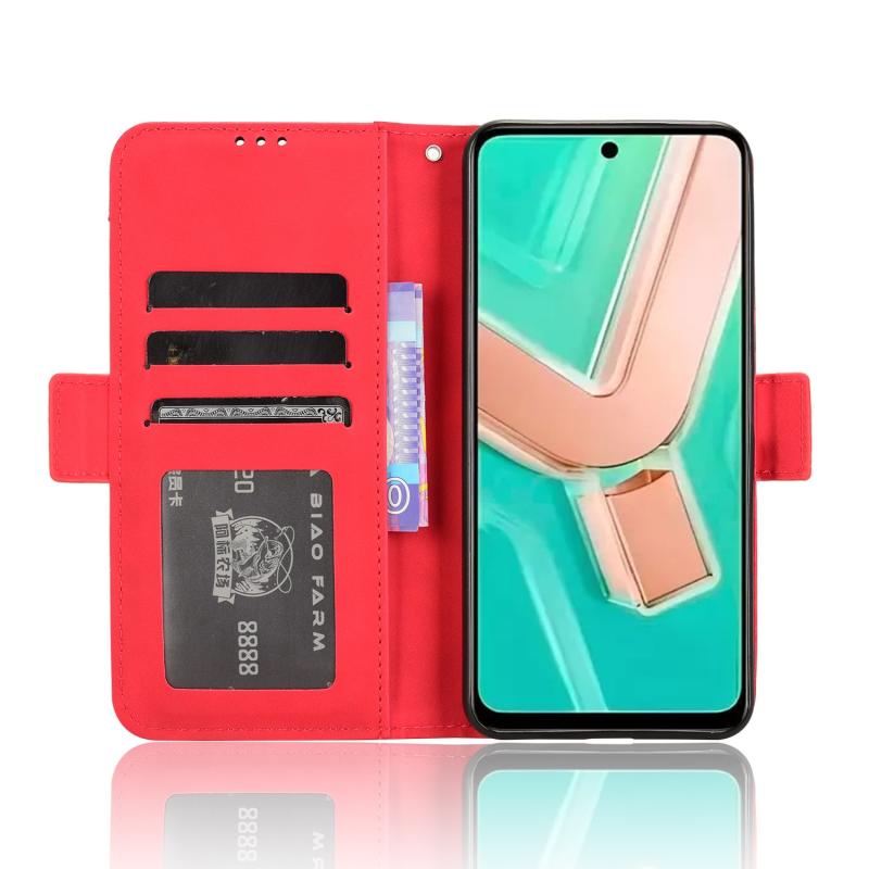 Θήκη τηλεφώνου από δέρμα για vivo Y28 4G με υφή μοσχαρίσιου δέρματος, αίσθηση στην αφή και θήκες καρτών (Κόκκινο)