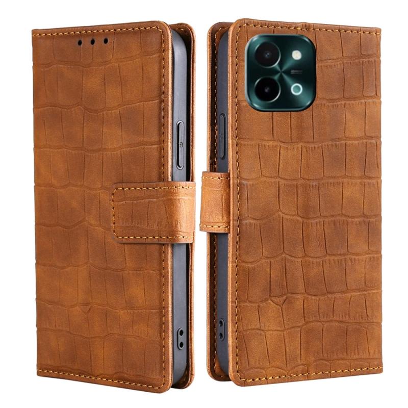 For vivo Y28 4G Skin Feel Crocodile Magnetic Clasp Leather Phone Case(Brown)