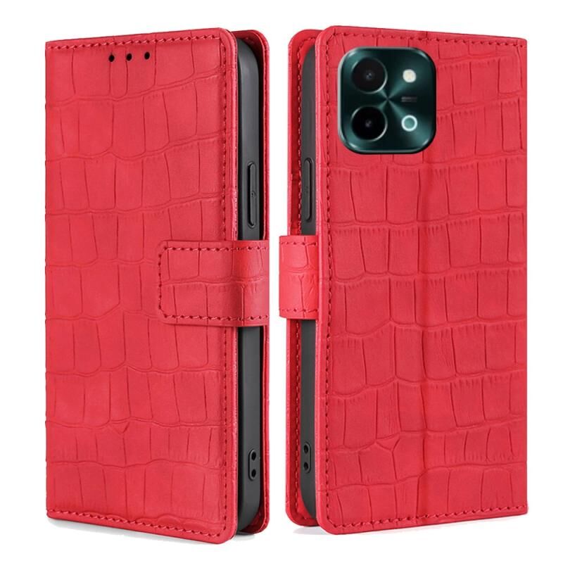 Θήκη τηλεφώνου από δέρμα με μαγνητικό κούμπωμα και υφή κροκόδειλου για vivo Y28 4G (Μαύρο)
