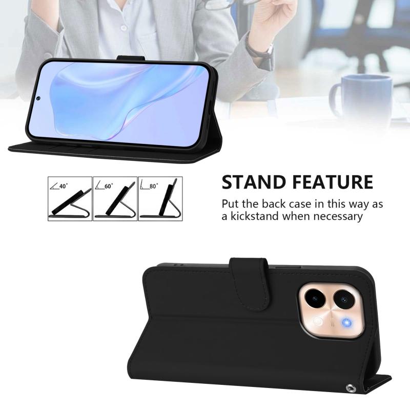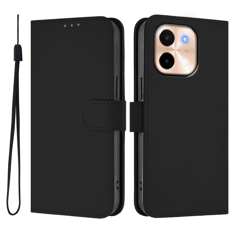 Θήκη τηλεφώνου από δέρμα με αίσθηση αφής, συμπαγούς χρώματος για vivo Y28 4G με κορδόνι (Καφέ)