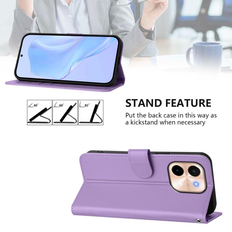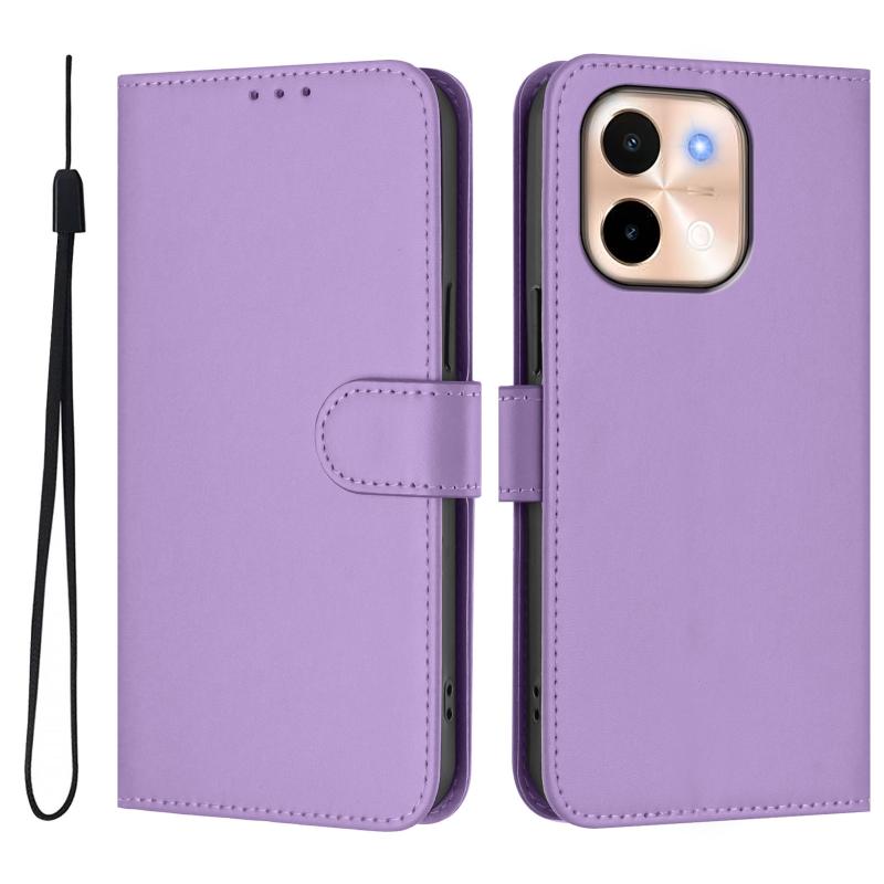Θήκη τηλεφώνου από δέρμα με αίσθηση αφής, συμπαγούς χρώματος για vivo Y28 4G με κορδόνι (Καφέ)