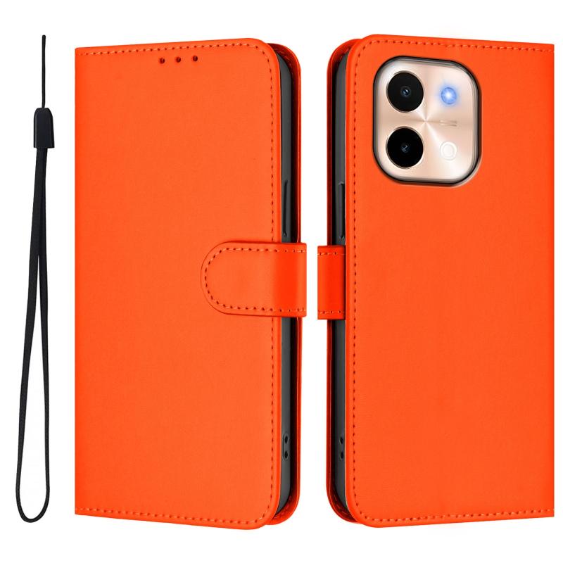 For vivo Y28 4G Skin Feel Solid Color Leather Phone Case with Lanyard(Orange)