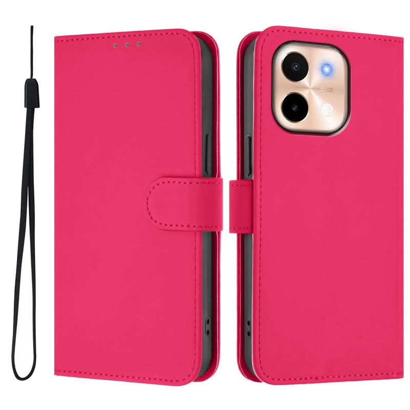 For vivo Y28 4G Skin Feel Solid Color Leather Phone Case with Lanyard(Rose Red)