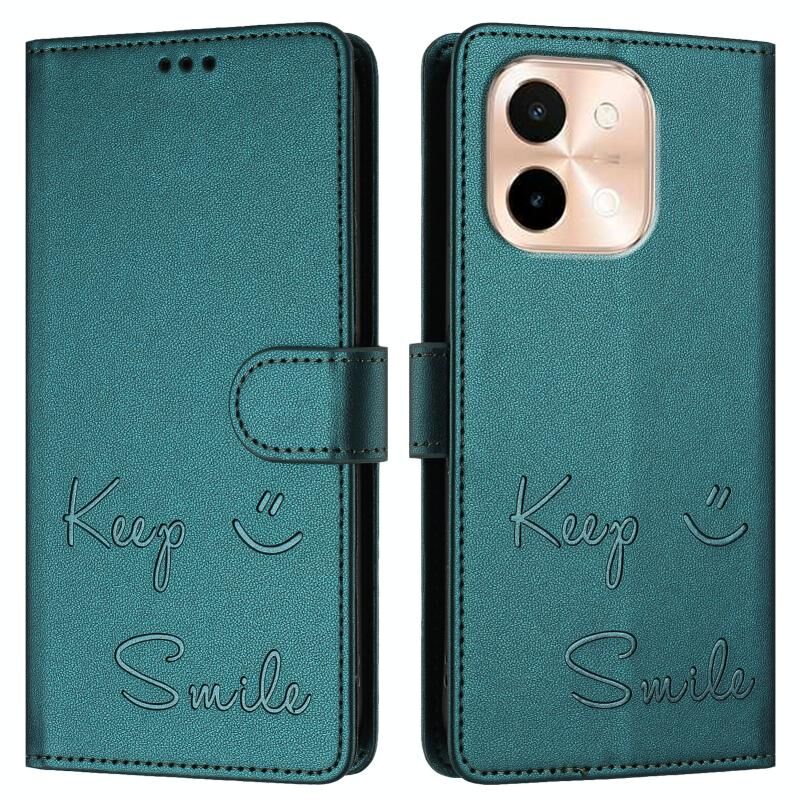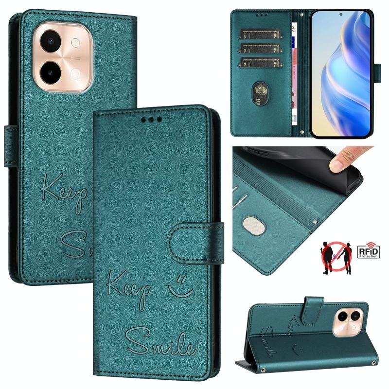 Για vivo Y28 4G Χαμόγελο ανάγλυφο RFID δερμάτινη θήκη τηλεφώνου (Πράσινο παγώνι)