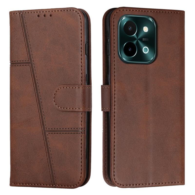 For vivo Y28 4G Stitching Calf Texture Buckle Leather Phone Case(Brown)