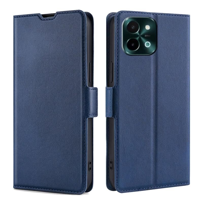 Θήκη τηλεφώνου δέρματος οριζόντιας αναδίπλωσης με λεπτή τάση και πλευρική αγκράφα για vivo Y28 4G (Μπλε)