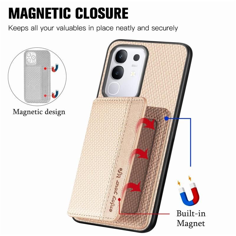 For vivo Y29 4G Carbon Fiber Magnetic Card Bag Phone Case(Khaki)