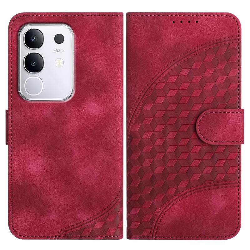 Θήκη δέρματος για vivo Y29 4G με ανάγλυφο σχέδιο κεφαλής ελέφαντα και κορδόνι (Κόκκινο Ρόδι)