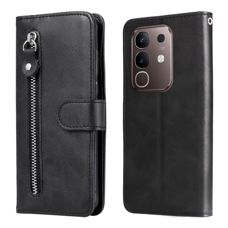 Θήκη τηλεφώνου δερμάτινη με φερμουάρ και υφή μοσχαριού για vivo Y29 4G (Χρυσό ροζ)