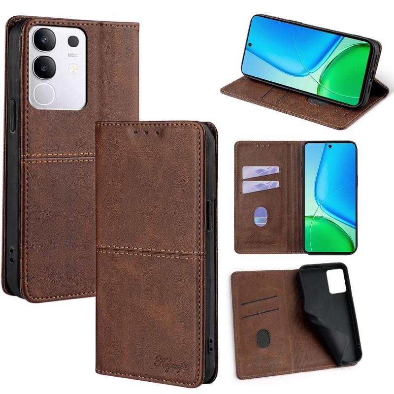 For vivo Y29 4G Global Cow Texture Magnetic Leather Phone Case(Dark Brown)