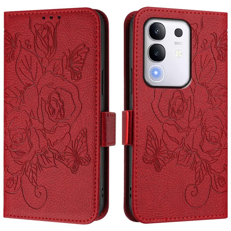 Θήκη τηλεφώνου δερμάτινη με ανάγλυφο σχέδιο και προστασία RFID κατά του κλοπής για vivo Y29 4G Global (Κόκκινο)