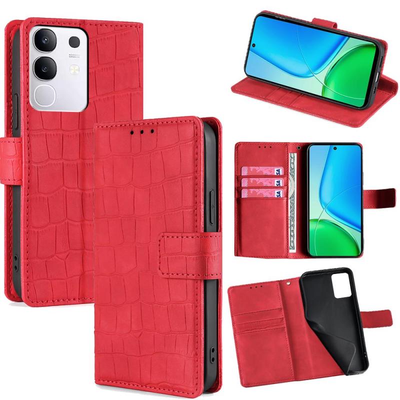 For vivo Y29 4G Global Skin Feel Crocodile Magnetic Clasp Leather Phone Case(Red)