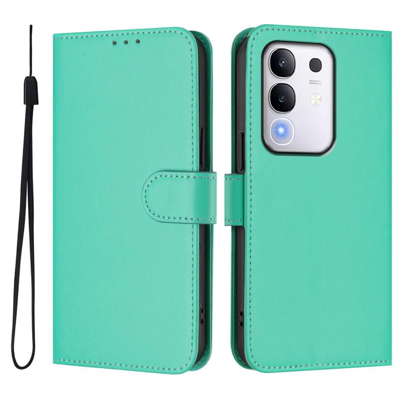 For vivo Y29 4G Global Skin Feel Solid Color Leather Phone Case with Lanyard(Green)