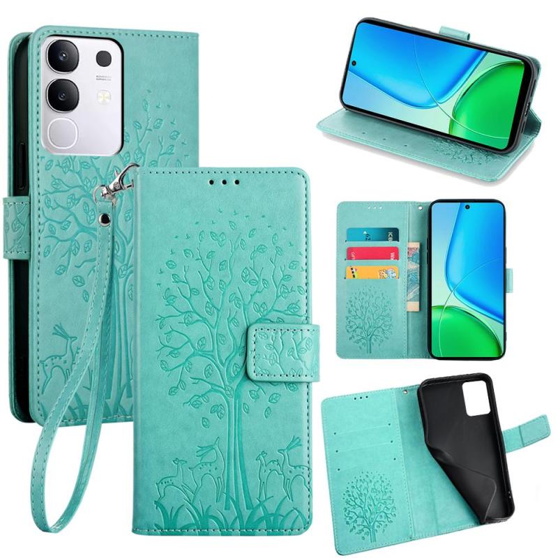 For vivo Y29 4G Global Tree & Deer Embossed Leather Phone Case(Green)