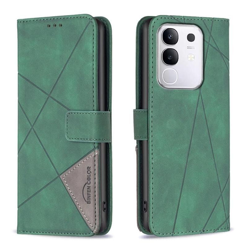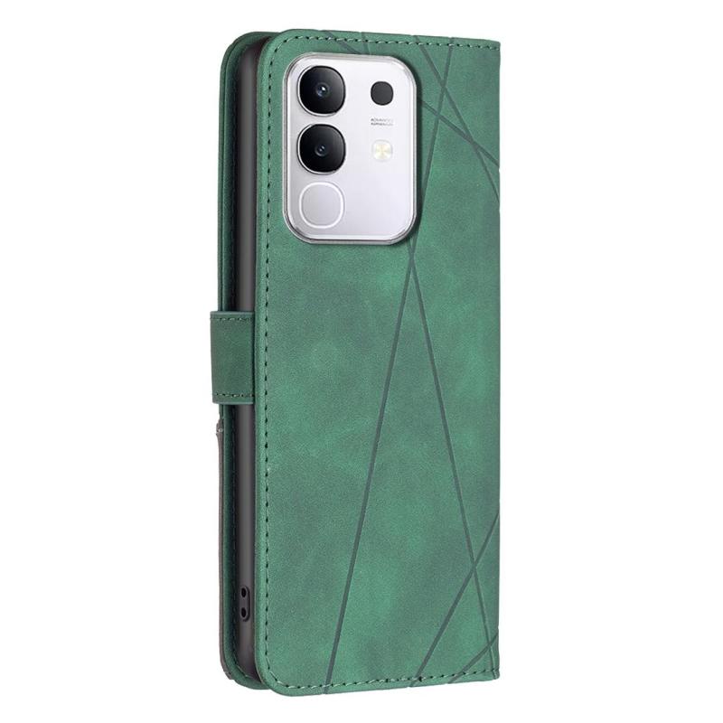 For vivo Y29 4G Magnetic Buckle Rhombus Texture Leather Phone Case(Green)