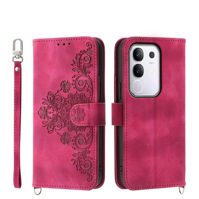 For vivo Y29 4G Skin Feel Flowers Embossed Wallet Leather Phone Case(Wine Red)