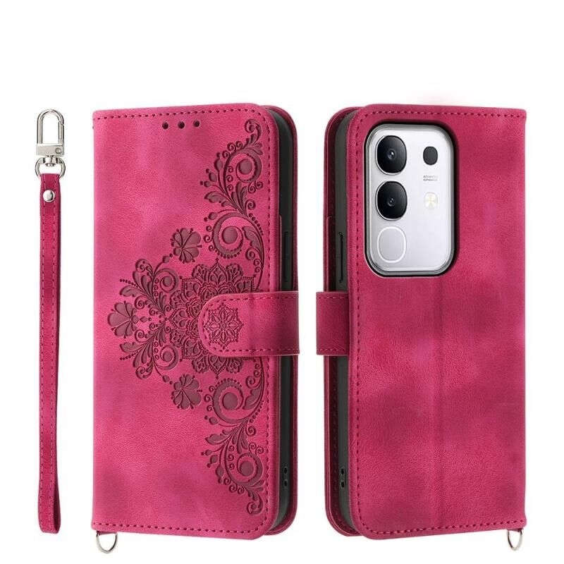 Θήκη τηλεφώνου από δέρμα με ανάγλυφα λουλούδια και υφή δέρματος για vivo Y29 4G (Μωβ)