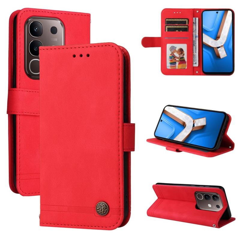 For vivo Y29 4G Skin Feel Life Tree Metal Button Leather Phone Case(Red)