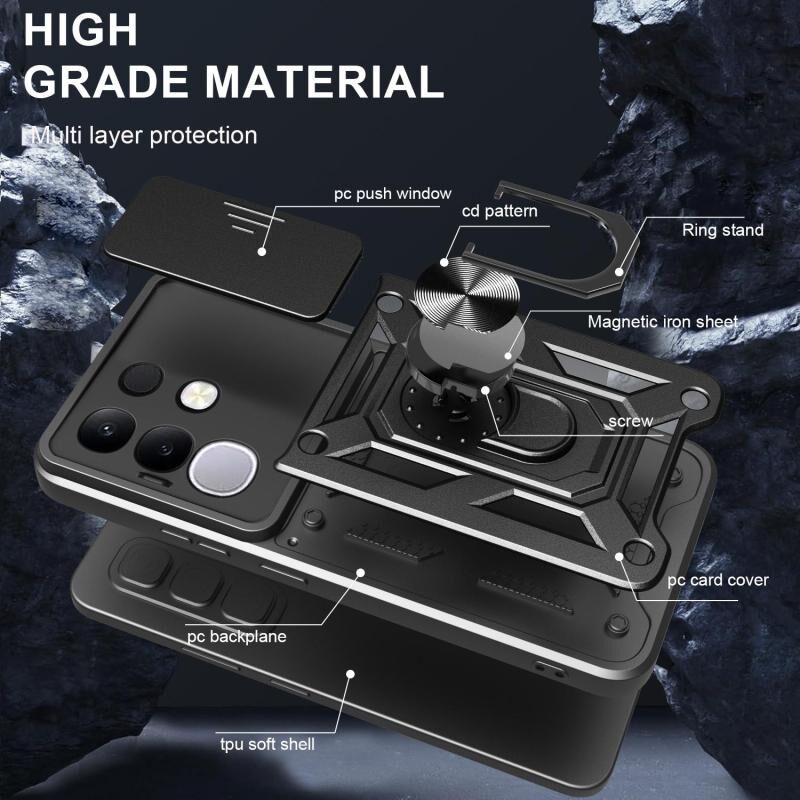 Θήκη τηλεφώνου για vivo Y29 4G, σχεδιασμός με ολισθαίνουσα κάλυψη κάμερας, TPU+PC (Μαύρο)