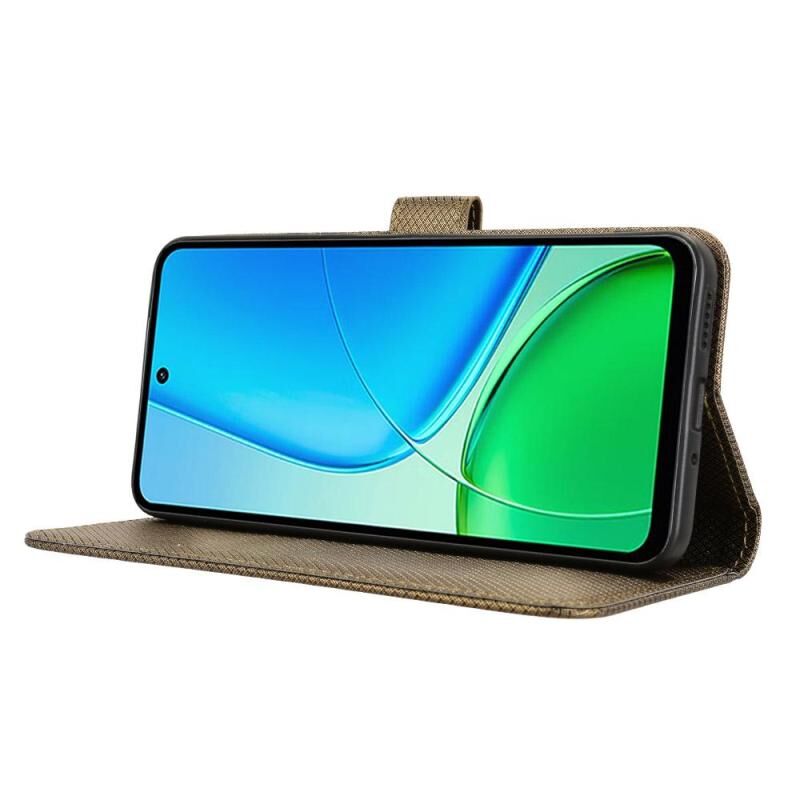 Θήκη τηλεφώνου από δέρμα με υφή διαμαντιού για vivo Y29 4G / T4x 5G (Καφέ)
