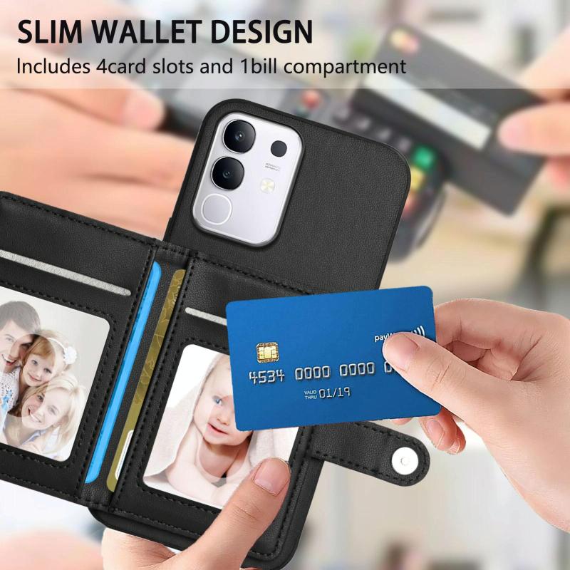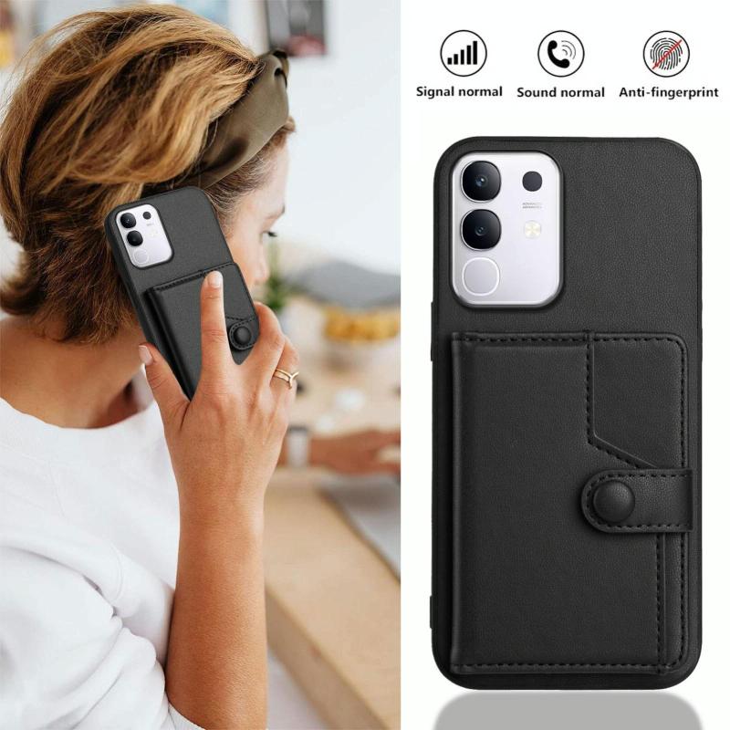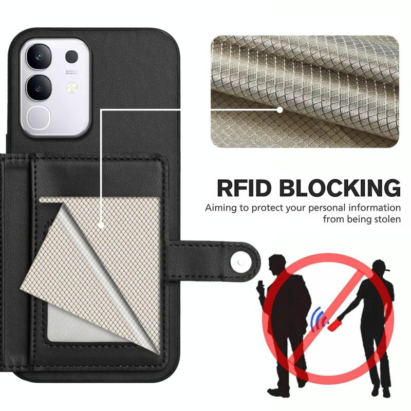 For vivo Y29 4G / T4x / Y300t Button Card Bag RFID Anti-theft Phone Case(Black)