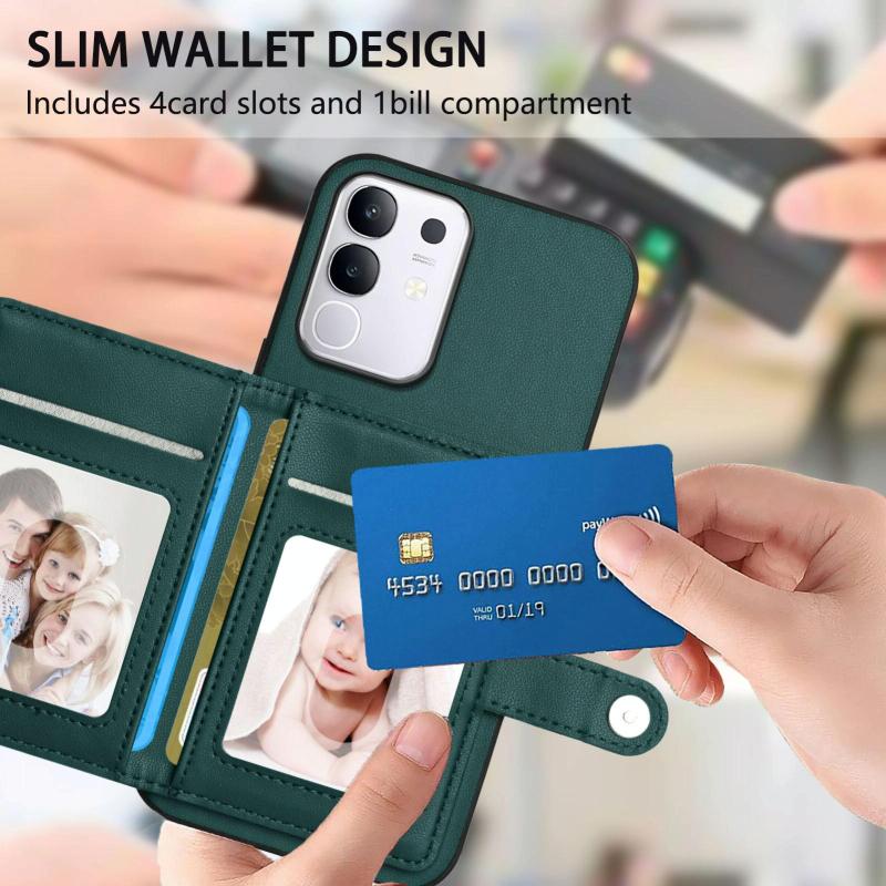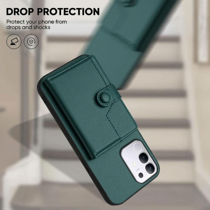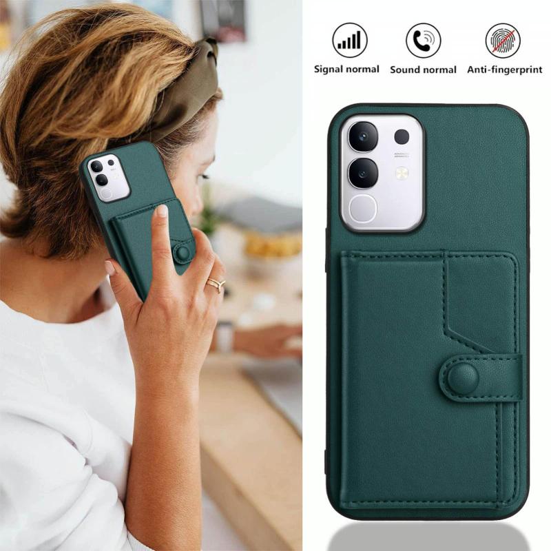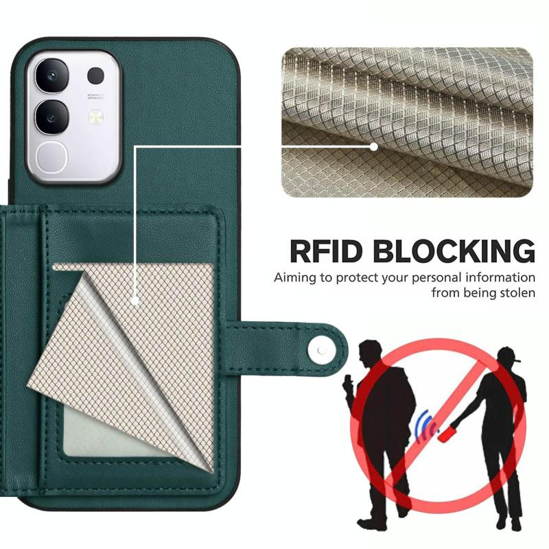 For vivo Y29 4G / T4x / Y300t Button Card Bag RFID Anti-theft Phone Case(Green)