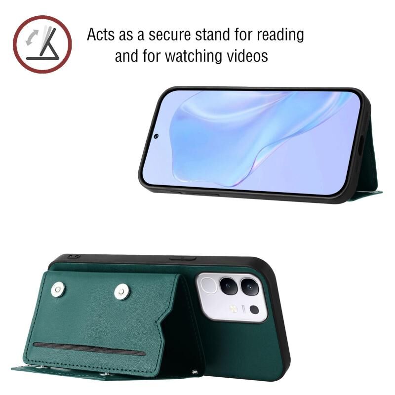 Θήκη τηλεφώνου για vivo Y29 4G / T4x / Y300t με αίσθηση δέρματος, τέσσερις θήκες καρτών και λουρί καρπού (πράσινο)