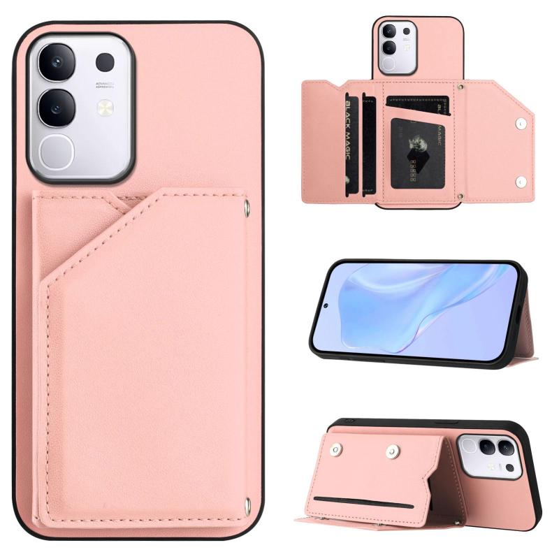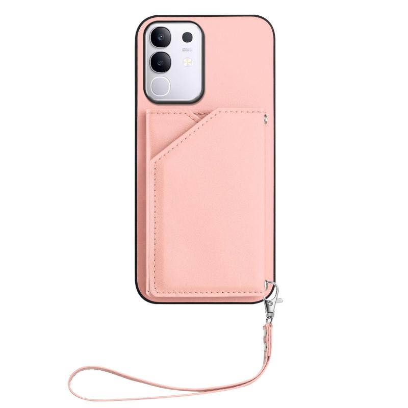 For vivo Y29 4G / T4x / Y300t Skin Feel Four Card Slots Phone Case with Wrist Strap(Pink)
