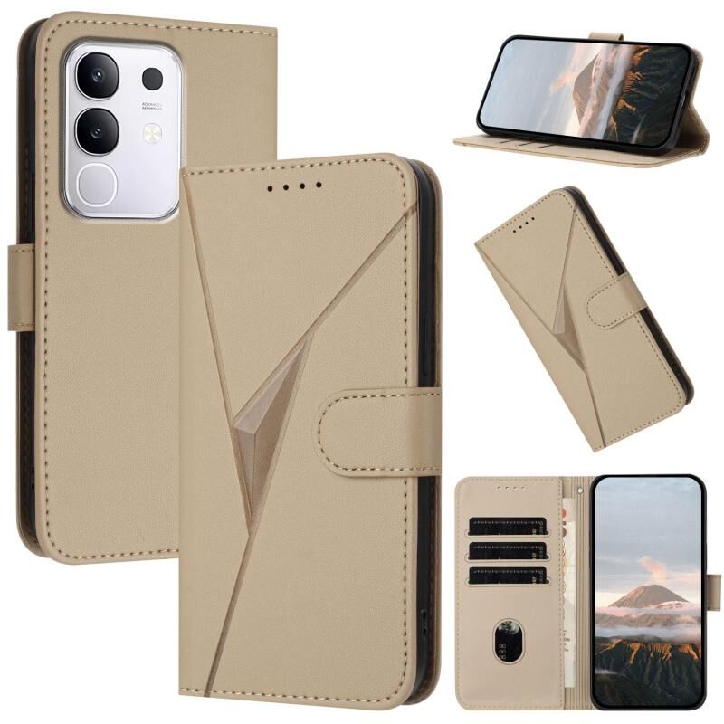 Θήκη τηλεφώνου από δέρμα με σχέδιο τριγώνου και μαγνητικό κούμπωμα για vivo Y29 4G (Σκούρο Μωβ)