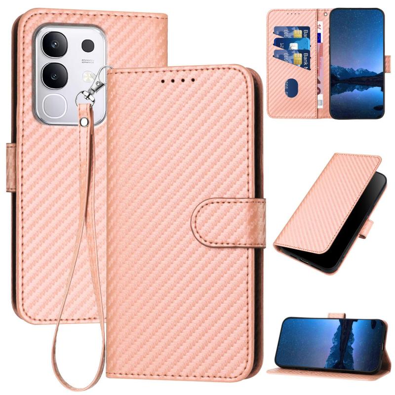 Θήκη τηλεφώνου από δέρμα με κούμπωμα από ανθρακονήματα για vivo Y29 4G YX0070 με κορδόνι (Κόκκινο)