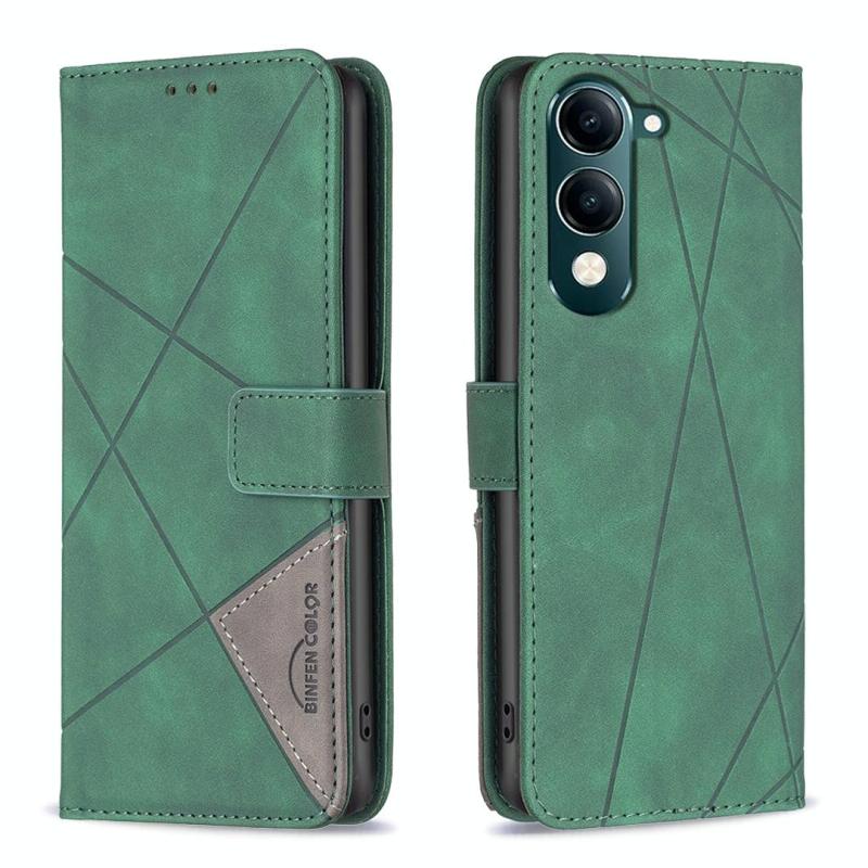 For vivo Y29S 5G Global / Y04 5G Global Magnetic Buckle Rhombus Texture Leather Phone Case(Green)