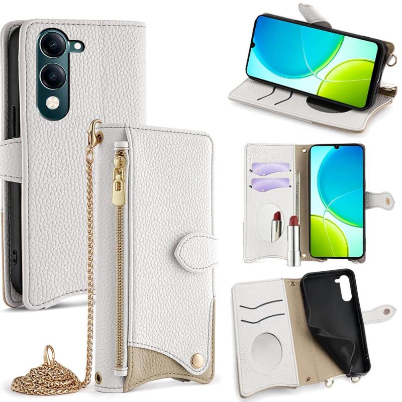 For vivo Y29s 5G / vivo Y04 4G Global Crossbody Chain Fishtail Litchi Leather Phone Case(White)