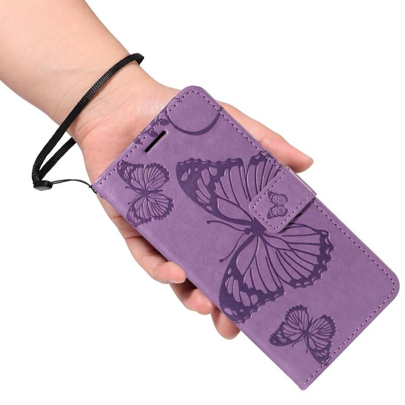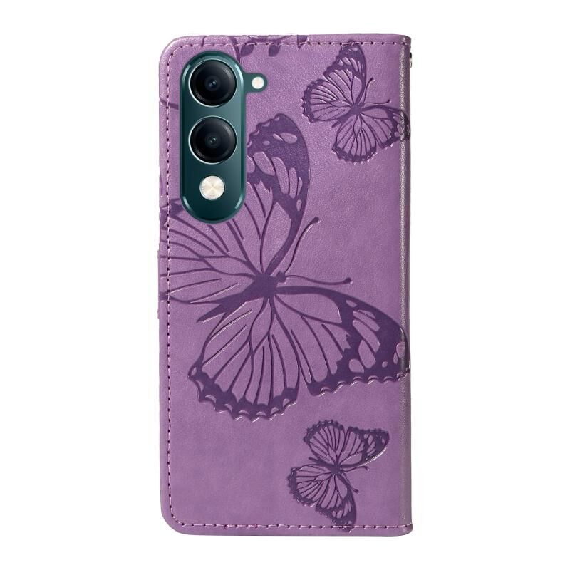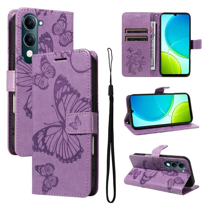 Θήκη τηλεφώνου από δέρμα με ανάγλυφο σχέδιο 3D πεταλούδας για vivo Y29S 5G / Y04 (Μωβ)