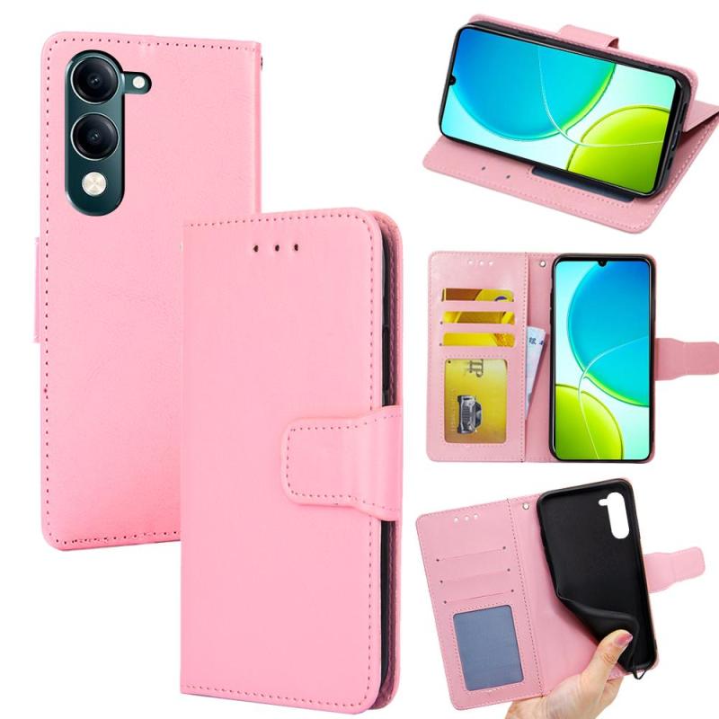 Θήκη τηλεφώνου από δέρμα με κρυσταλλική υφή για vivo Y29s 5G / Y04 4G (ρόζ)
